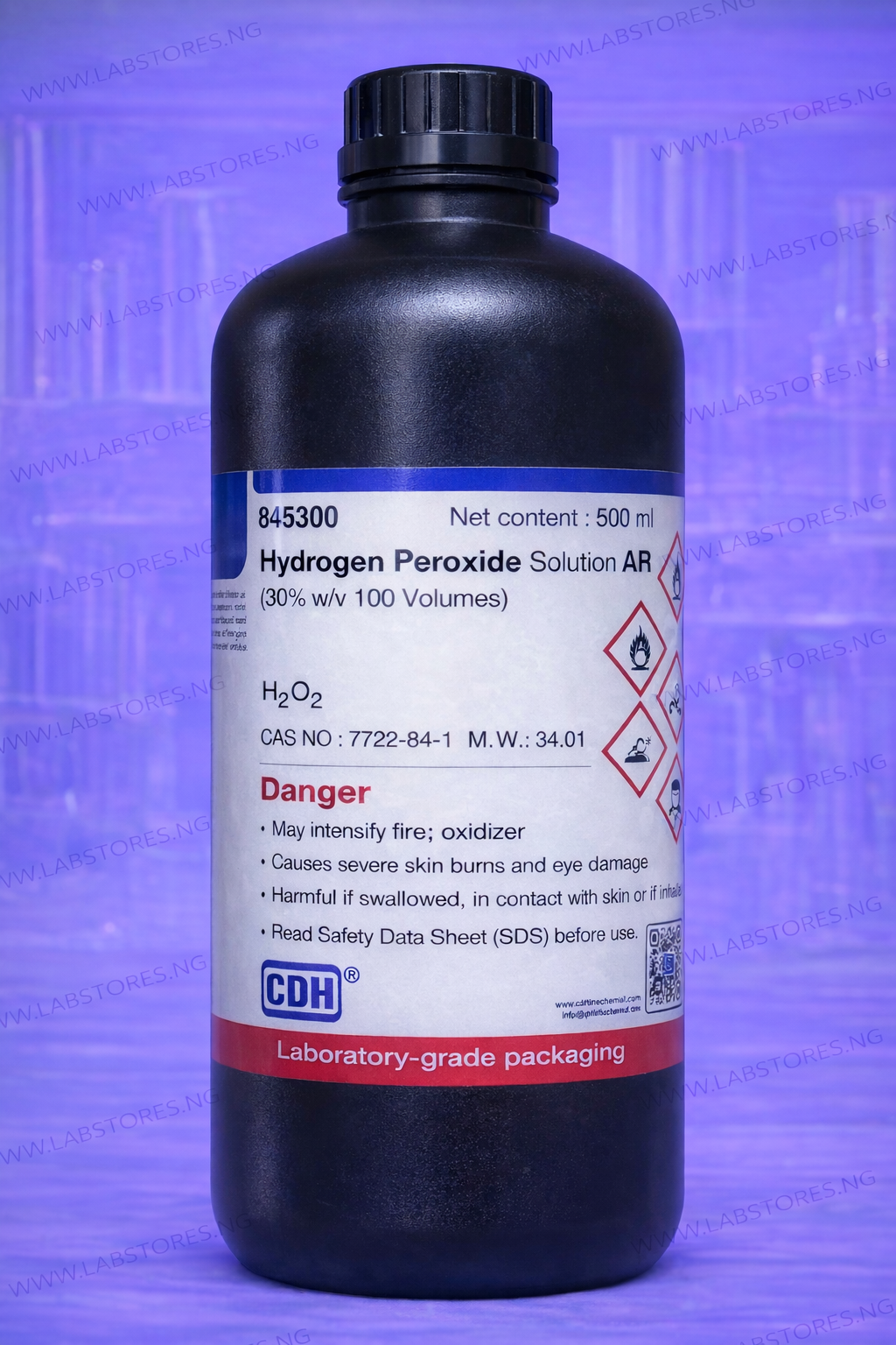 HYDROGEN PEROXIDE SOLUTION (AR), 30% w/v, 500 mL